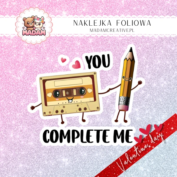Naklejka Foliowa Pojedyncza Walentynkowa Kaseta i Ołówek – Jesteś jak ołówek, który naprawia moje wspomnienia! Madam