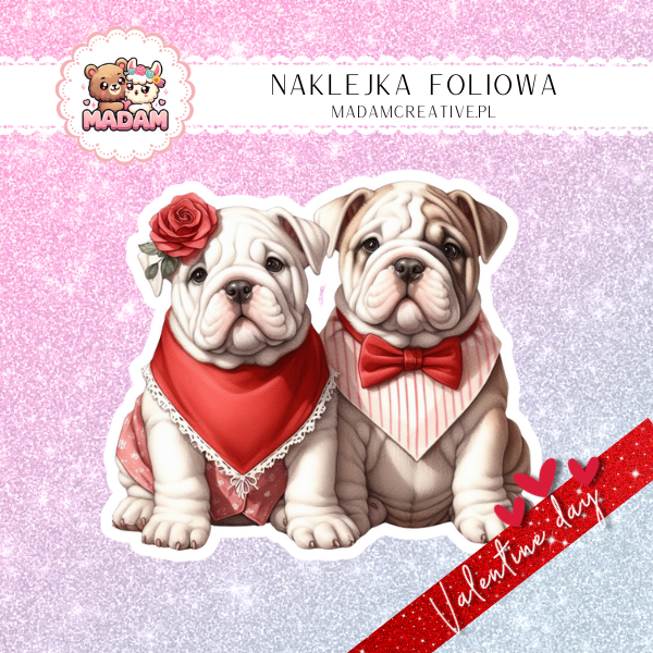 Naklejka Foliowa Pojedyncza Walentynkowa Para Buldogów – Razem tworzymy idealną parę! Madam