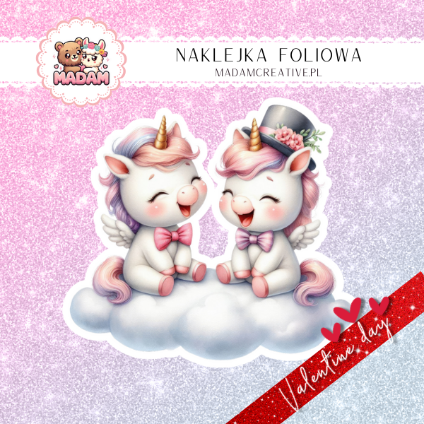 Naklejka Foliowa Pojedyncza Walentynkowa Para Jednorożców na Chmurce – Miłość, która unosi się nad tęczą! Madam