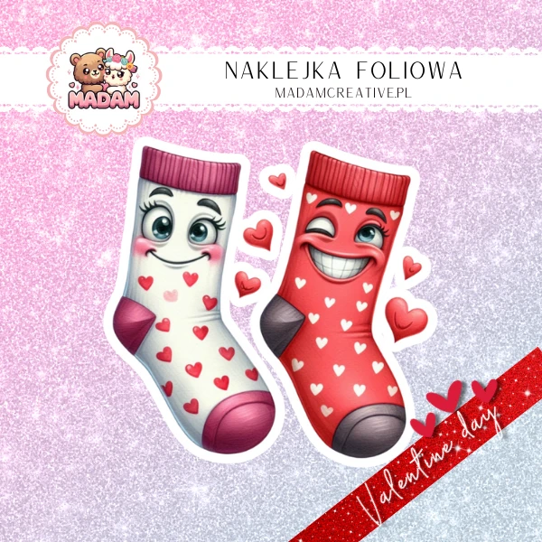 Naklejka Foliowa Pojedyncza Walentynkowe Skarpetki – Miłość, która zawsze jest w parze! Madam