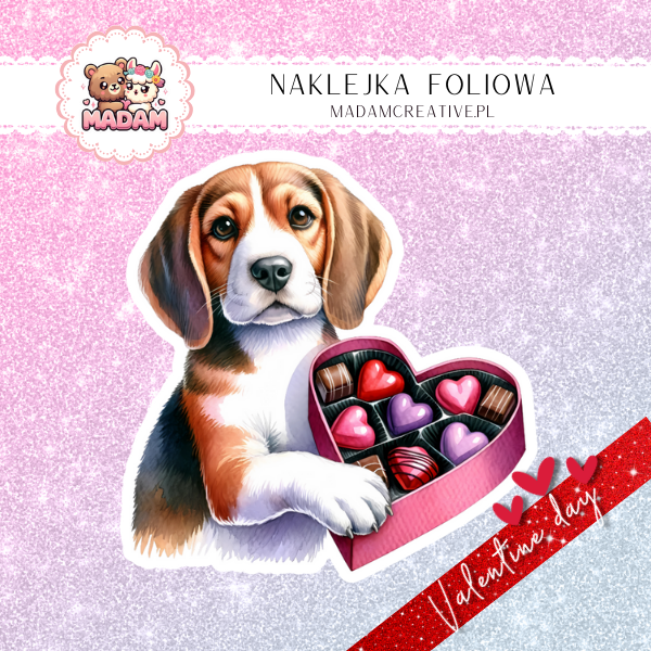 Naklejka Foliowa Pojedyncza Walentynkowy Pies Beagle – Miłość, która merda ogonem! Madam