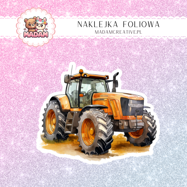 Naklejka Foliowa Pomarańczowy Traktor – Król Pola w Akcji! Madam