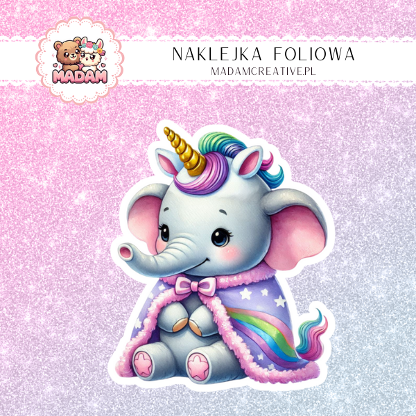 Naklejka Foliowa Słonik Jednorożec Kocykowy – Magiczny wieczór filmowy w pełnym stylu Madam
