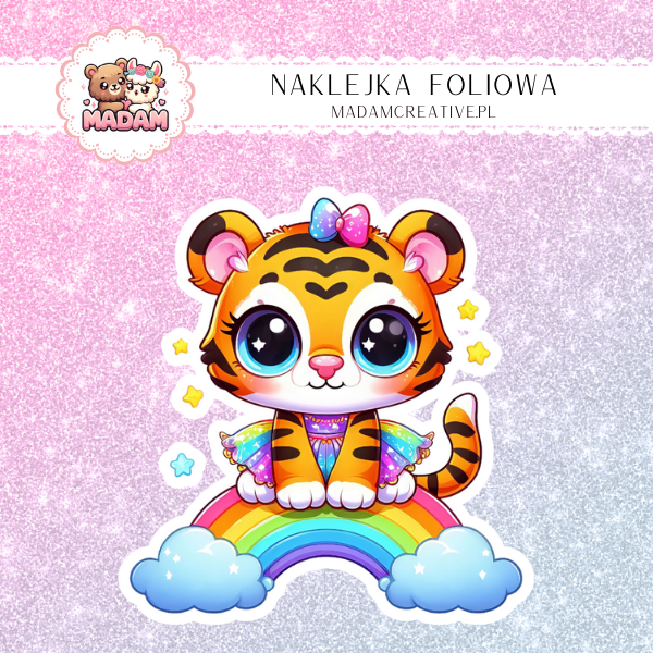 Naklejka Foliowa Tygrysek na Tęczy – Stróż Kolorowych Marzeń! Madam