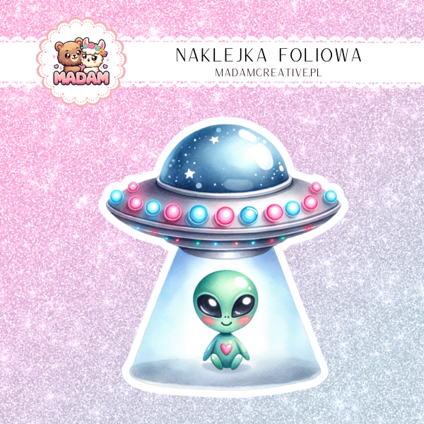 Naklejka Foliowa UFO z Ufoludkiem – Zabierz Mnie Do Swojego Lodówkowego Lidera! Madam