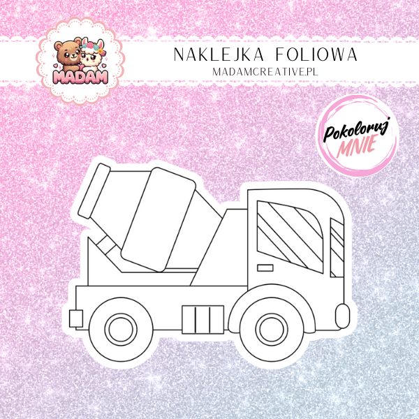 Naklejka Foliowa do Kolorowania Betoniarka – Obracamy się po Przygodę! Madam