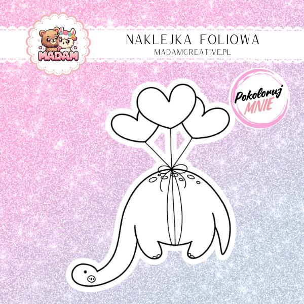 Naklejka Foliowa do Kolorowania Dinozaur z Balonami – Latająca Prehistoryczna Radość! Madam
