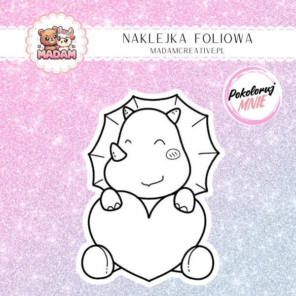 Naklejka Foliowa do Kolorowania Dinozaur z Sercem – Zakochany Gigant! Madam
