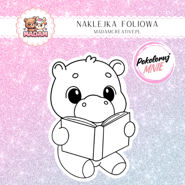 Naklejka Foliowa do Kolorowania Hipopotam z Książką – Czytelniczy Geniusz Bagien! Madam
