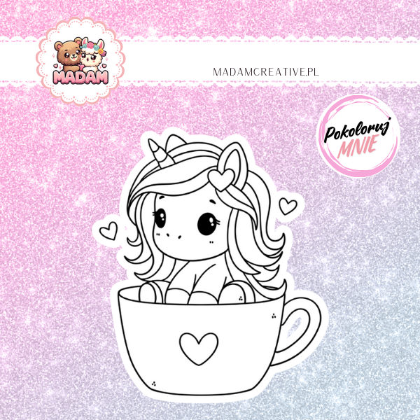Naklejka Foliowa do Kolorowania Jednorożec w Filiżance – Magiczne Latte z Tęczową Pianką! Madam