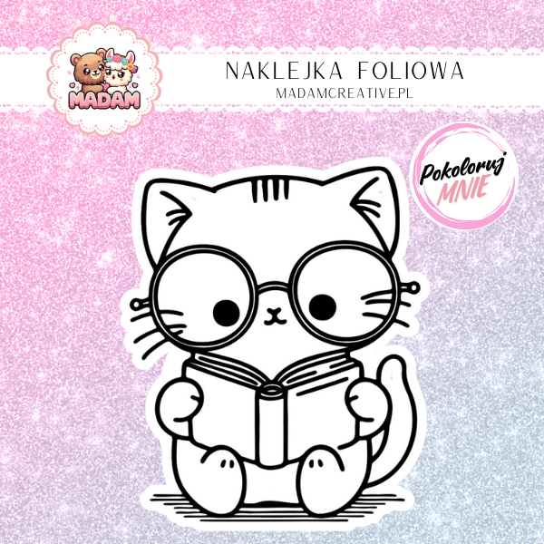 Naklejka Foliowa do Kolorowania Kotek z Książką – Literacki Mistrz Mruczenia! Madam