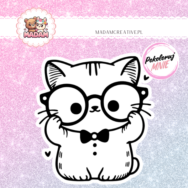 Naklejka Foliowa do Kolorowania Kotek z Muchą – Koci Dżentelmen z Klasy! Madam