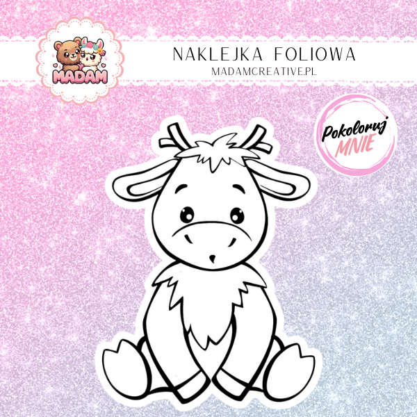 Naklejka Foliowa do Kolorowania Krowa – Łąkowy Towarzysz o Wielkim Sercu! Madam
