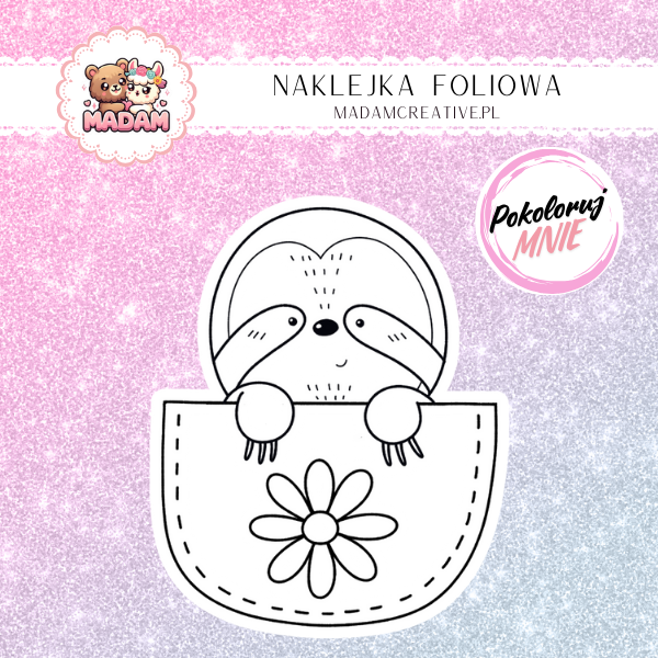 Naklejka Foliowa do Kolorowania Leniwiec w Kieszeni – Drzemka na Wyciągnięcie Ręki! Madam