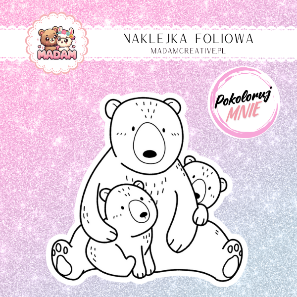 Naklejka Foliowa do Kolorowania Rodzina Misiów – Uściski i Radości! Madam