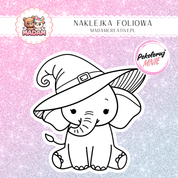 Naklejka Foliowa do Kolorowania Słoń w Kapeluszu Czarodzieja – Magiczny Trąbalski Show! Madam