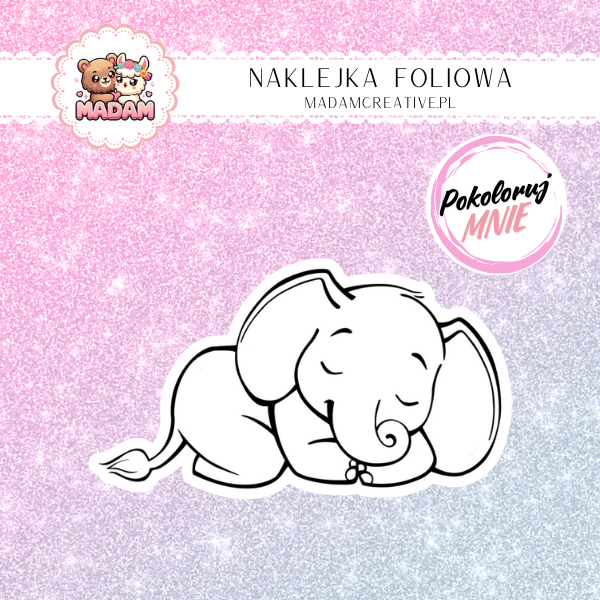 Naklejka Foliowa do Kolorowania Śpiący Słoń – Słodkie Sny na Długą Noc! Madam
