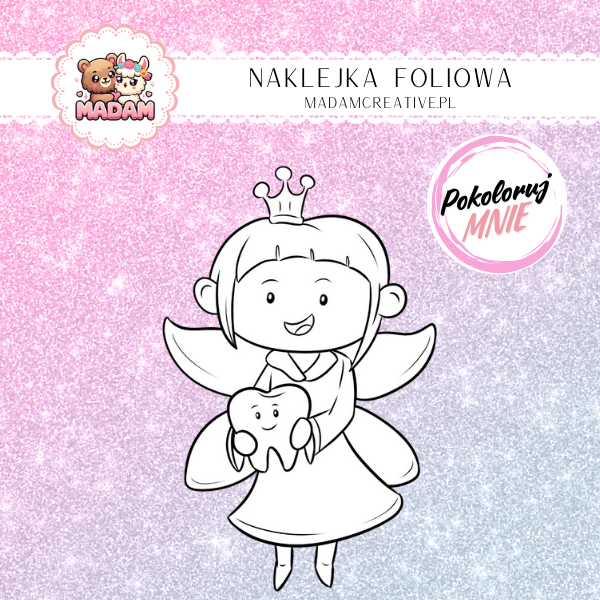 Naklejka Foliowa do Kolorowania Wróżka Zębuszka – Magiczne Ochronne Zaklęcia! Madam