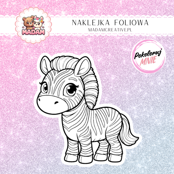 Naklejka Foliowa do Kolorowania Zebra – Pasiasta Diva na Safari! Madam