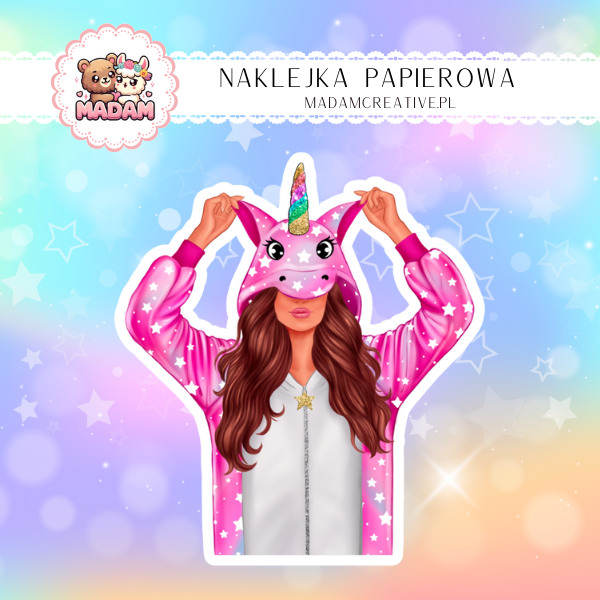 Naklejka Papierowa Pojedyncza Dziewczyna Jednorożec – Magia, urok i odrobina fantazji! Madam