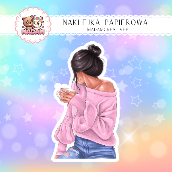 Naklejka Papierowa Pojedyncza Dziewczyna z Kawą – Moda i energia na poranek! Madam