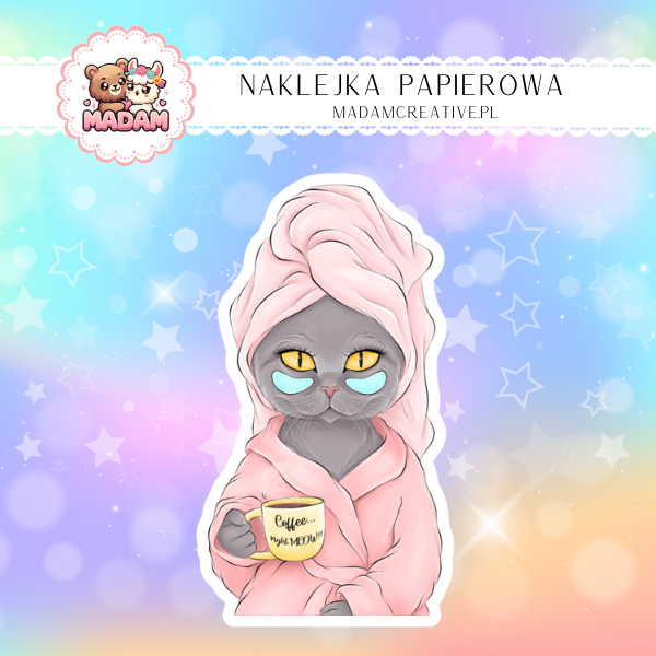 Naklejka Papierowa Pojedyncza Poranek z Kotem i Kawą – Stylowy mruczek i dawka kofeiny! Madam