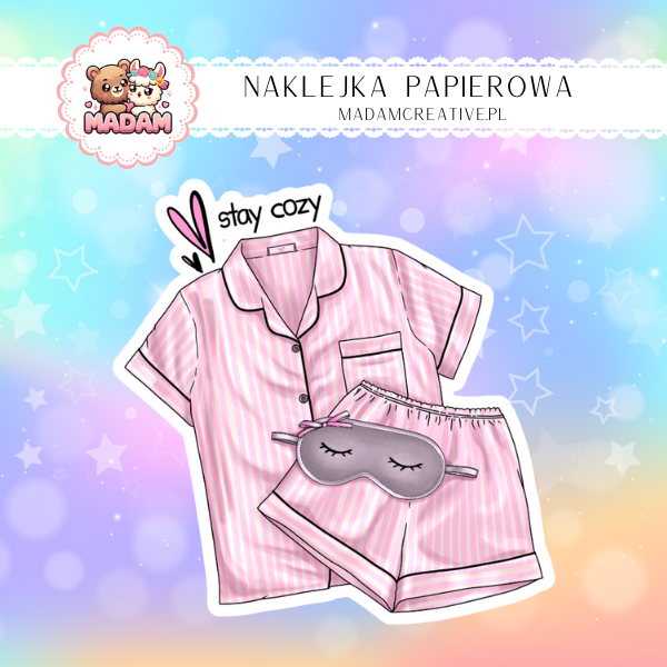 Naklejka Papierowa Pojedyncza Przytulna Piżama – Stylowy komfort na spokojne wieczory! Madam