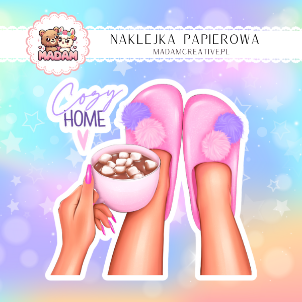 Naklejka Papierowa Pojedyncza Przytulny Dom i Gorąca Czekolada – Słodkie chwile relaksu! Madam