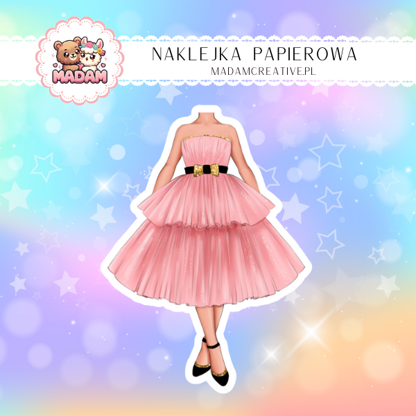 Naklejka Papierowa Pojedyncza Urodzinowa Dziewczyna – Tiul, róż i błysk na wyjątkowe chwile! Madam