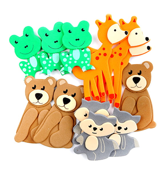 Zestaw warstwowych naklejek z pianki, z motywami leśnych zwierząt, w 5 różnych wzorach. Świetnie nadają się do wszelkiego rodzaju dziecięcej aktywności twórczej, jak również do zdobienia projektów kreatywnych takich jak kartki okolicznościowe, albumy, pudełka, opakowania prezentów i wielu innych. Ilość w opakowaniu: 12 szt. Rozmiar: mix