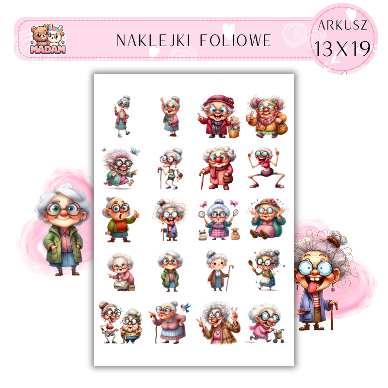 Naklejki Foliowe Babcia 13x19, Madam