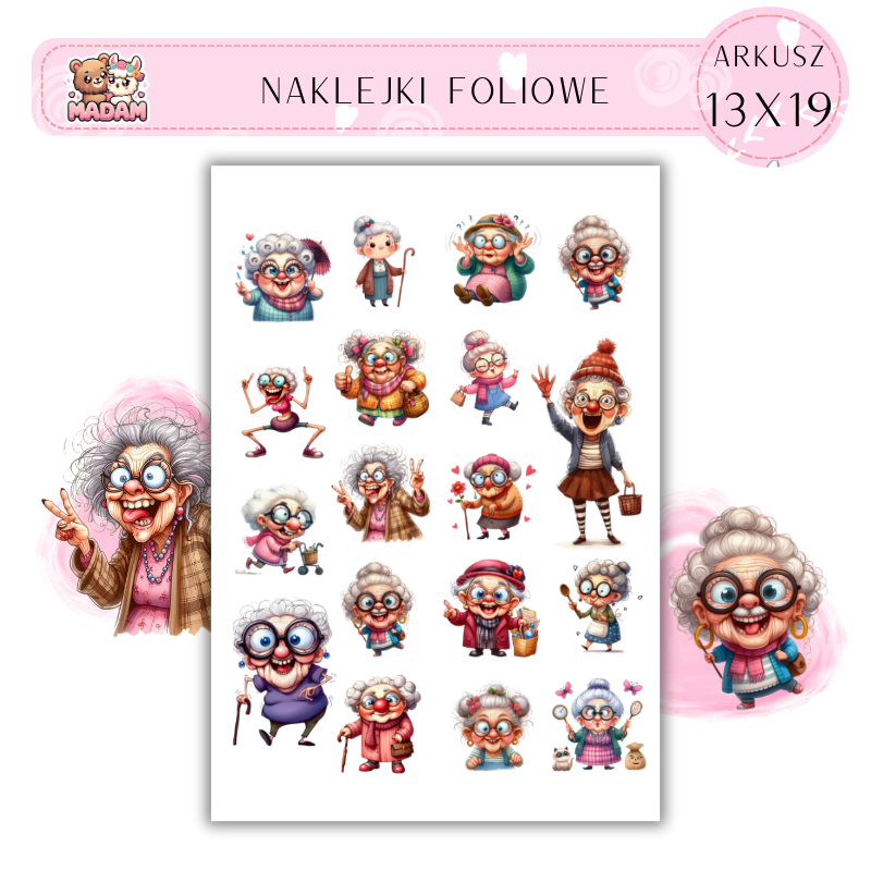 Naklejki Foliowe Babcia 13x19, Madam