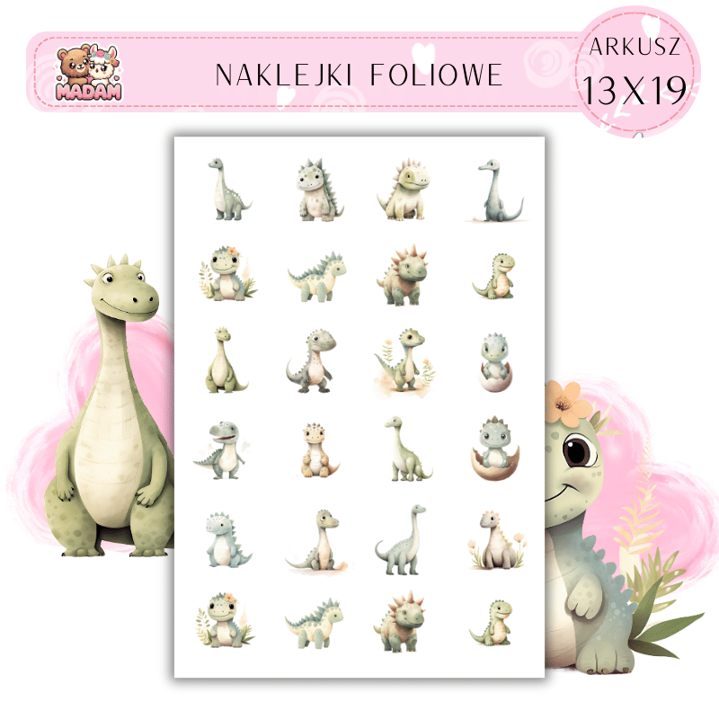 Naklejki Foliowe Bajkowe Dinozaury 13x19, Madam