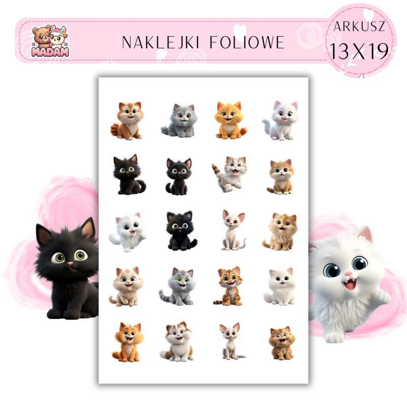 Naklejki Foliowe Bajkowe Koty 13x19, Madam
