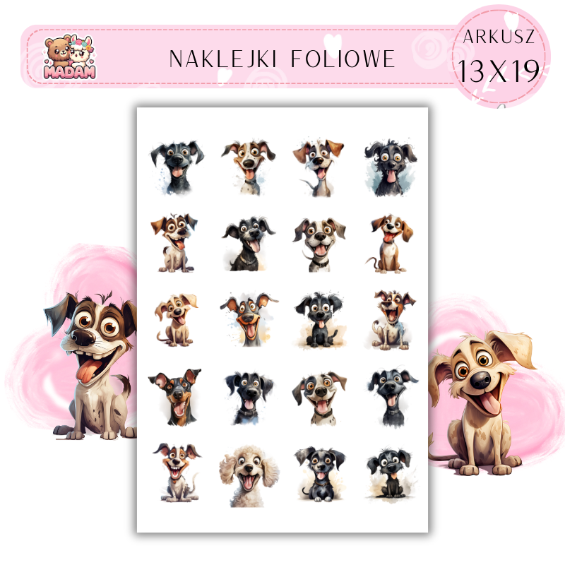 Naklejki Foliowe Bajkowe Śmieszne Psy 13x19, Madam