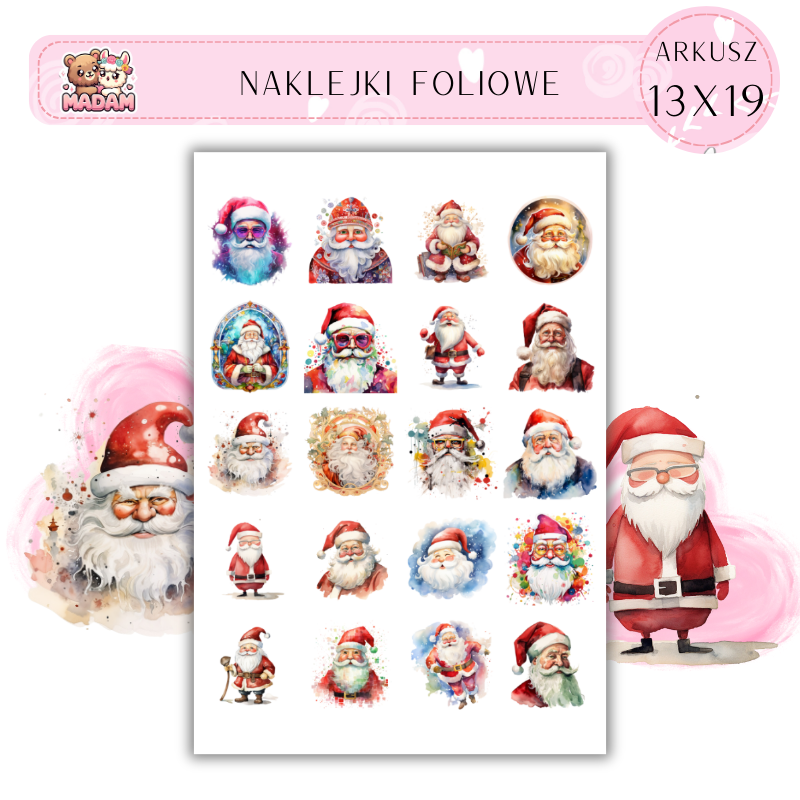 Naklejki Foliowe Boże Narodzenie Mikołaj 13x19, Madam