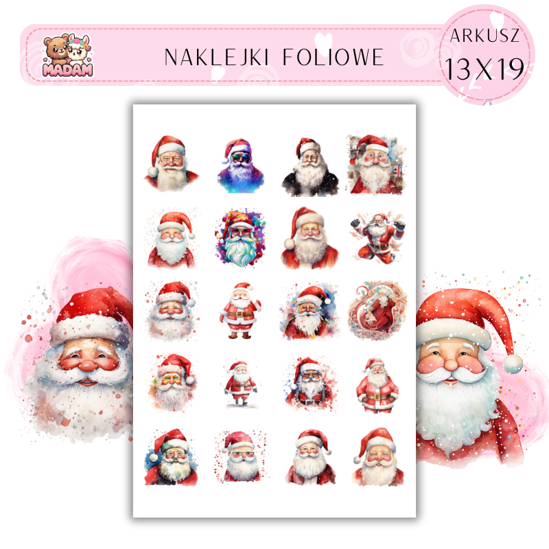 Naklejki Foliowe Boże Narodzenie Mikołaj 13x19, Madam
