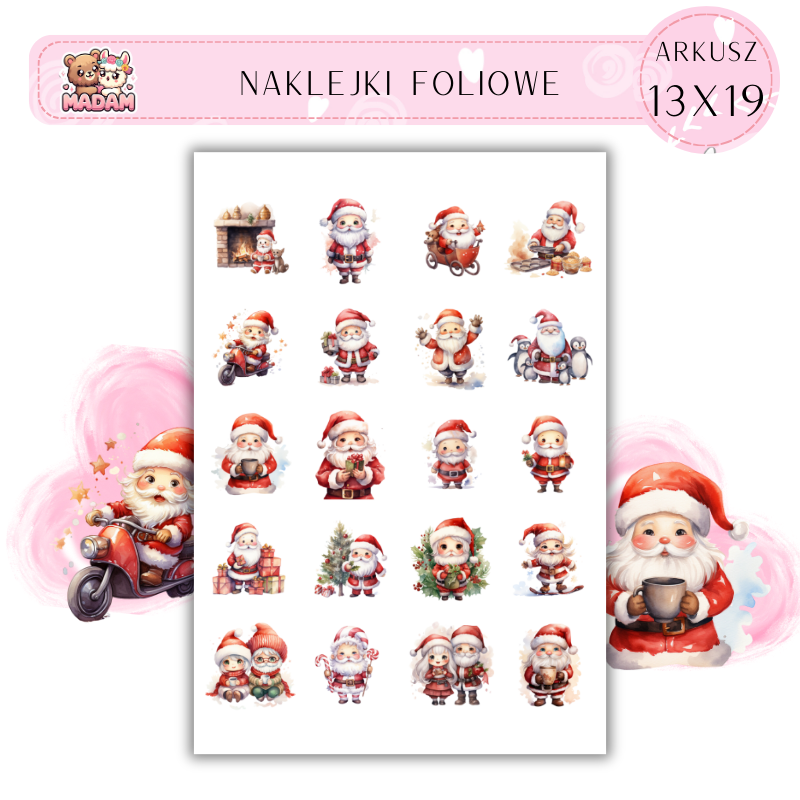 Naklejki Foliowe Boże Narodzenie Mikołaje 13x19, Madam