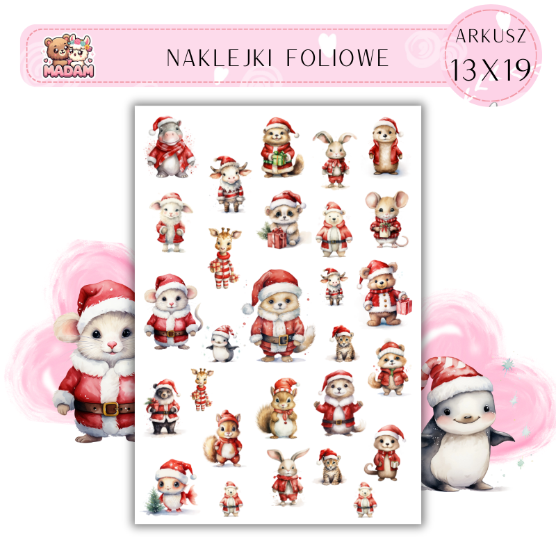 Naklejki Foliowe Boże Narodzenie Zwierzęta 13x19, Madam