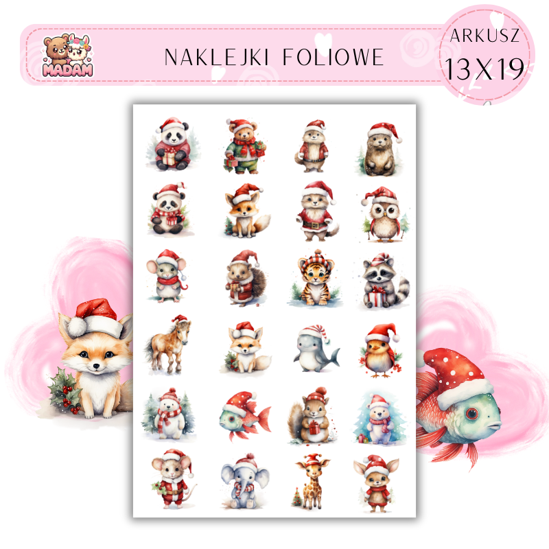 Naklejki Foliowe Boże Narodzenie Zwierzęta 13x19, Madam