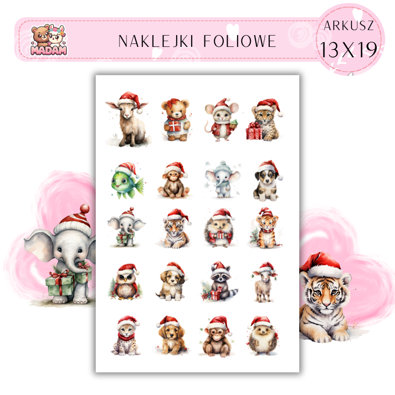 Naklejki Foliowe Boże Narodzenie Zwierzęta 13x19, Madam