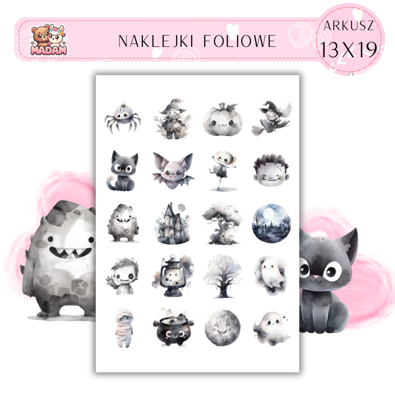 Naklejki Foliowe Czarno Białe Halloween 13x19, Madam