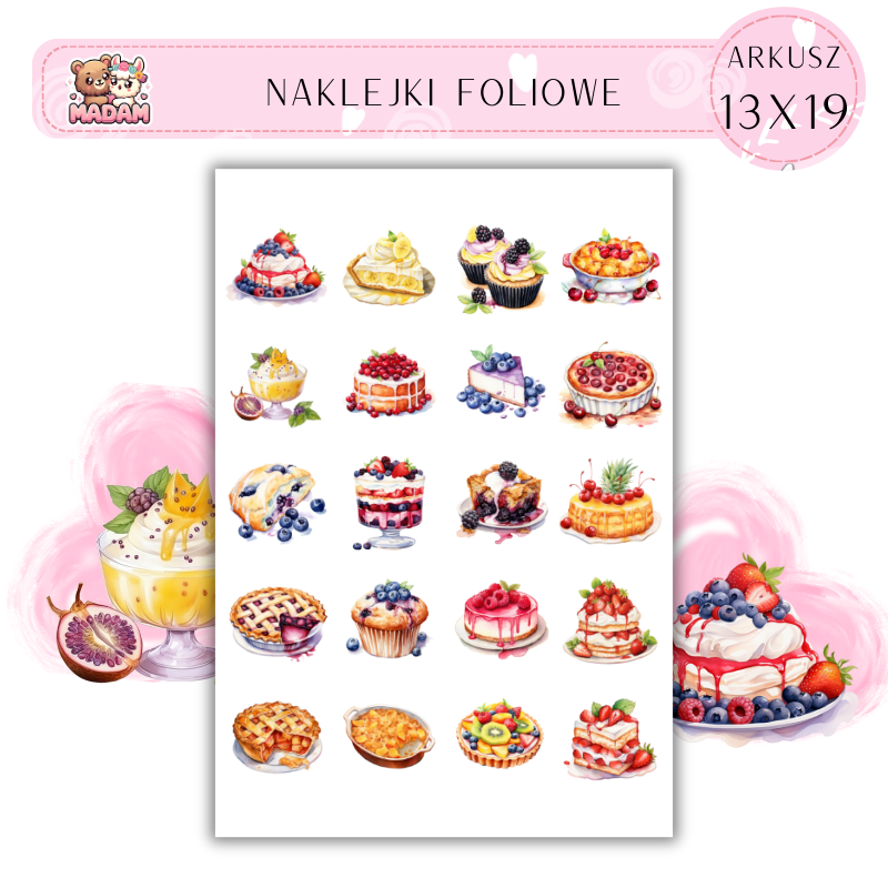 Naklejki Foliowe Desery Ciasta Słodkości 13x19, Madam