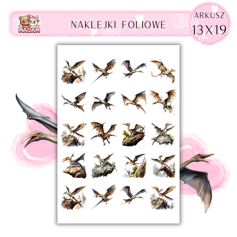 Naklejki Foliowe Dinozaury 13x19, MaDam