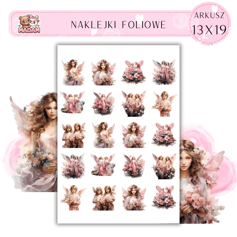 Naklejki Foliowe Dziewczynka Anioł Kwiaty 13x19, Madam