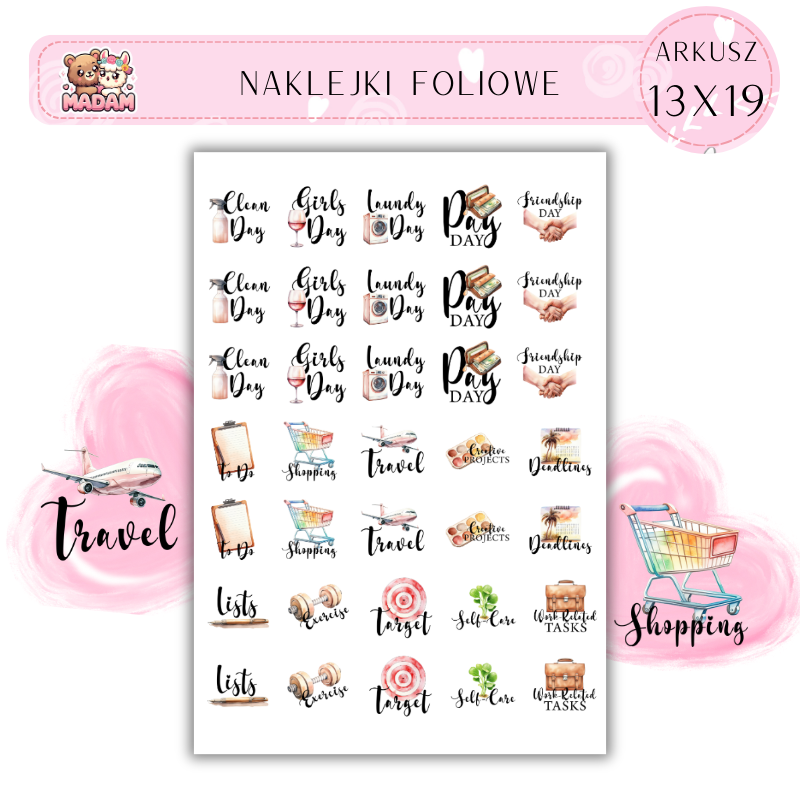 Naklejki Foliowe Funkcyjne do planera 13x19, Madam
