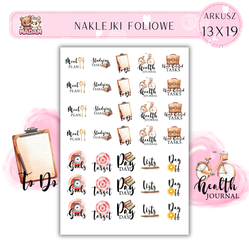 Naklejki Foliowe Funkcyjne do planera 13x19, Madam