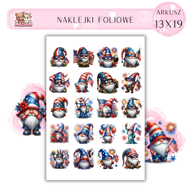 Naklejki Foliowe Gnomy USA 13x19, Madam