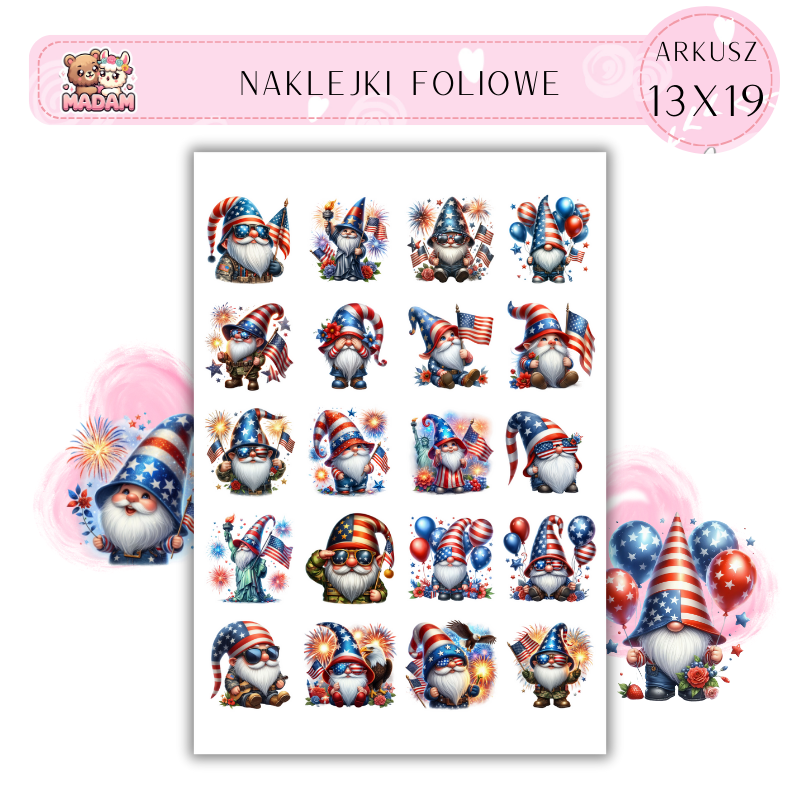 Naklejki Foliowe Gnomy USA 13x19, Madam
