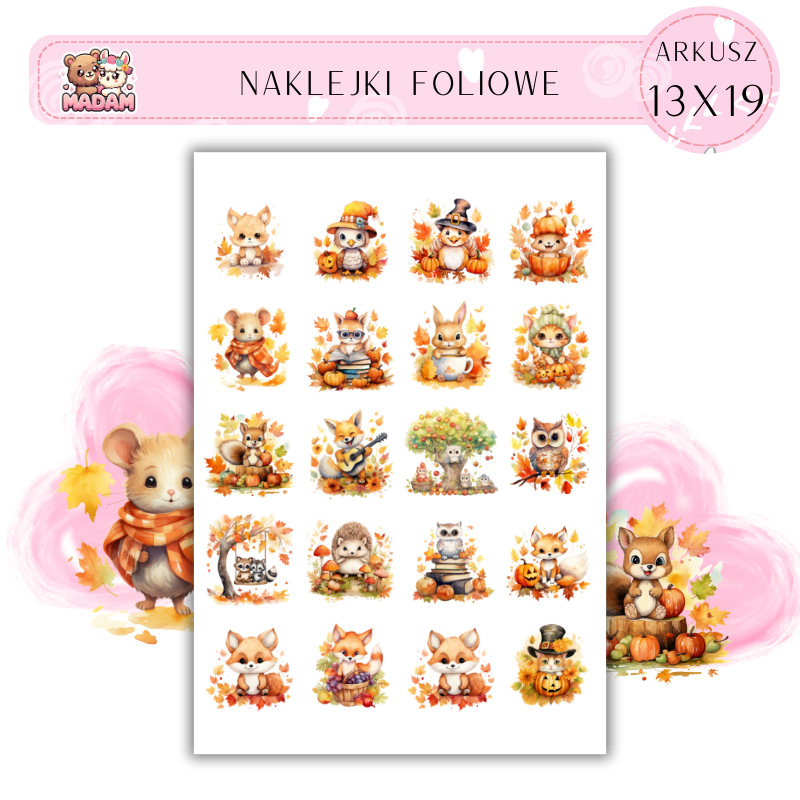Naklejki Foliowe Jesień Zwierzęta 13x19, Madam
